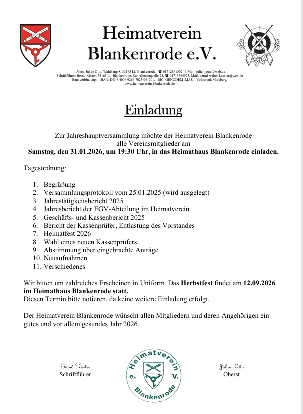 im Namen des Heimatvereins Blankenrode 1950 e.V. begrüße ich euch recht herzlich auf unserer Homepage. Hier findet Ihr aktuelle Informationen, Termine, Bilder und Ansprechpartner unseres Vereins sowie einiges Wissenswertes über unseren Ort Blankenrode. Wir hoffen, dass euch unsere Internetseite gefällt und freuen uns natürlich, wenn wir euch auf unserem Heimatfest begrüßen dürfen, welches wir jedes Jahr zu Pfingsten feiern.